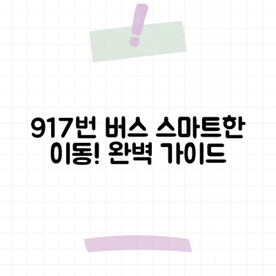 이렇게 몇 가지 간단한 팁으로 917번 버스를 이용하며 요금을 절약할 수 있으니, 여러분도 작지만 똑똑한 선택을 해보세요! 함께 더 스마트한 이동 방법을 찾아요!