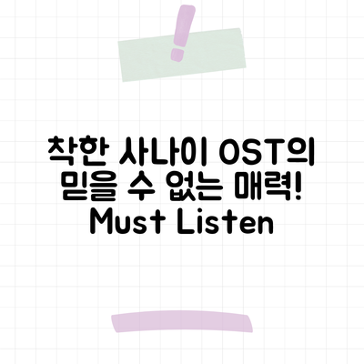 이처럼 ‘착한 사나이 OST’는 다양한 장르가 조화롭게 어우러져 독특한 분위기를 만들어내며, 우리에게 깊은 감동을 주는 작품입니다. 여러분도 이 특별한 경험을 놓치지 마세요!
