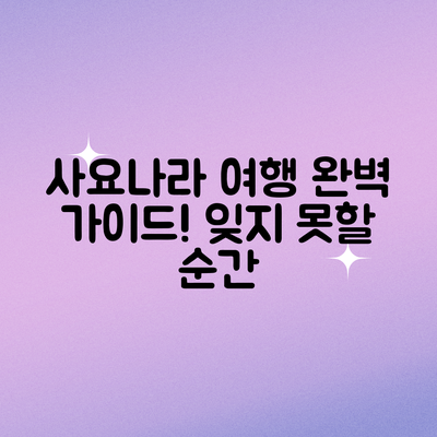 또한, 미리 온라인 커뮤니티에서 리뷰를 확인하거나, 여행 클래스를 참여하여 가이드와 함께 이동하는 방법도 유용합니다. 이러한 접근법을 통해 사요나라의 진정한 매력을 발견하고, 더 풍성한 여행을 만들어보세요.